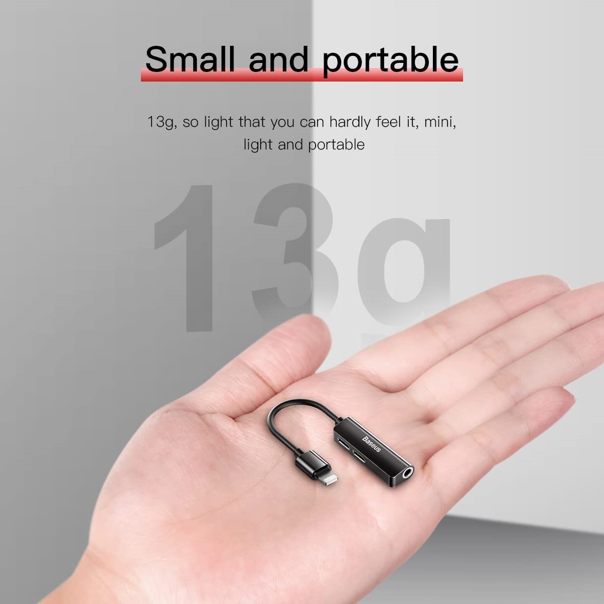 Adaptorul L52 Lightning la port Lightning si port Jack 3.5mm de la Baseuspermite incarcarea telefonului si utilizarea castilor pentru redare audio in acelasi timp. Portul de 3.5mm se poate utiliza doar pentru muzica, functia apel fiind indisponibila, iar portul Lightning se poate folosi doar pentru incarcare, functia de sincronizare date nefiind suportata.