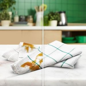 *Teste de laborator efectuate pe tesatura de amestec de bumbac si poliester, cu pete de tocanita de vita, sorbet de zmeura, budinca de ciocolata, intr-un ciclu de spalare la 40°C.
