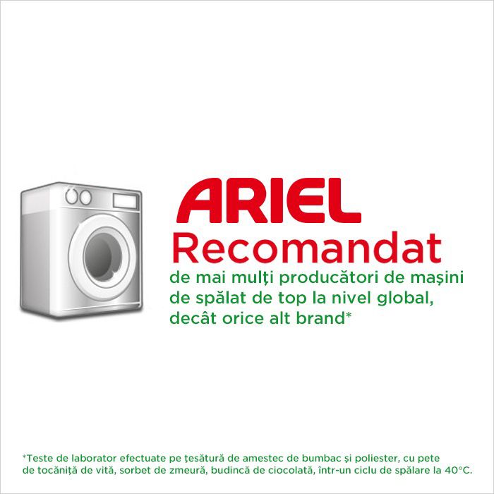 5. Ariel este recomandat de catre mai multi producatori de masini de spalat de top, comparativ cu oricare alt brand la nivel global.