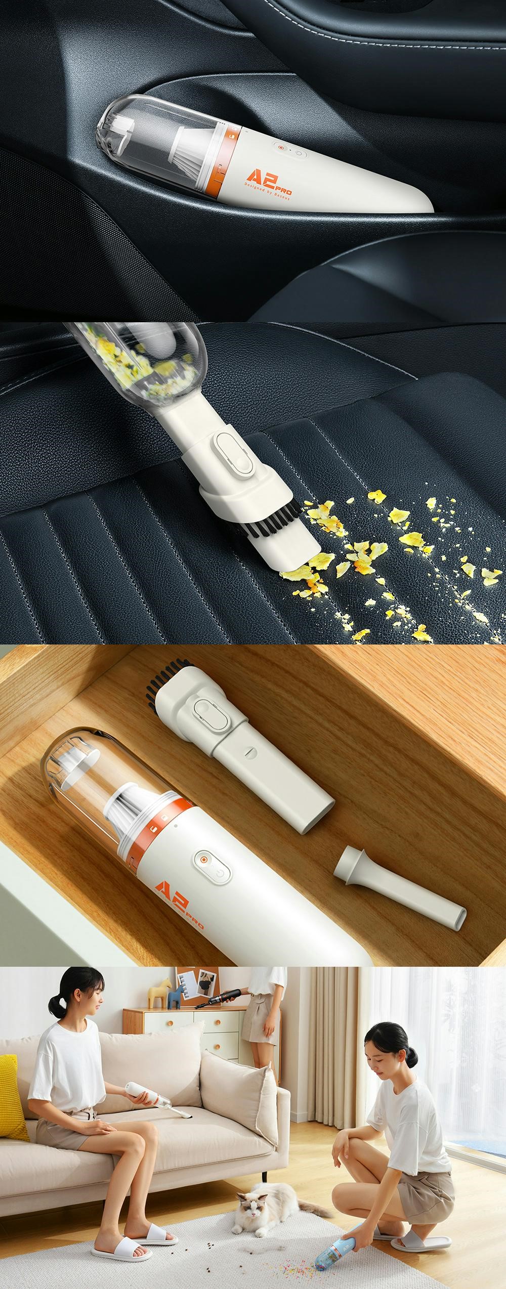 Aspiratorul Baseus curata eficient murdaria cu puterea sa de 6000 Pa. Va fi perfect pentru curatarea masinii si a casei. Bateria rezistenta asigura o durata lunga de functionare, iar rezervorul de praf de 120 ml reduce frecventa de golire a acestuia. In plus, filtrul HEPA indeparteaza pana la 99,7% din murdarie. In kit veti gasi si perii pentru diverse zone.