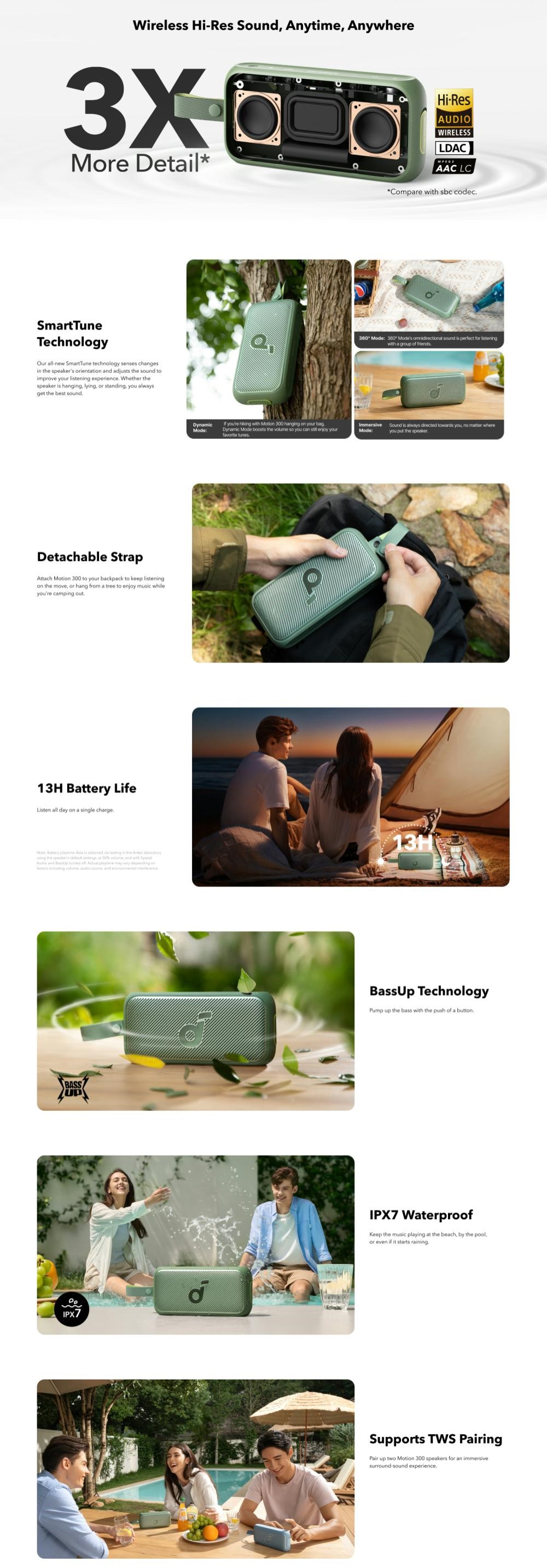 Imbunatatiti experienta audio in aer liber cu sunetul Hi-Res wireless. Nu veti gasi o experienta audio mai buna la o boxa atat de mica.