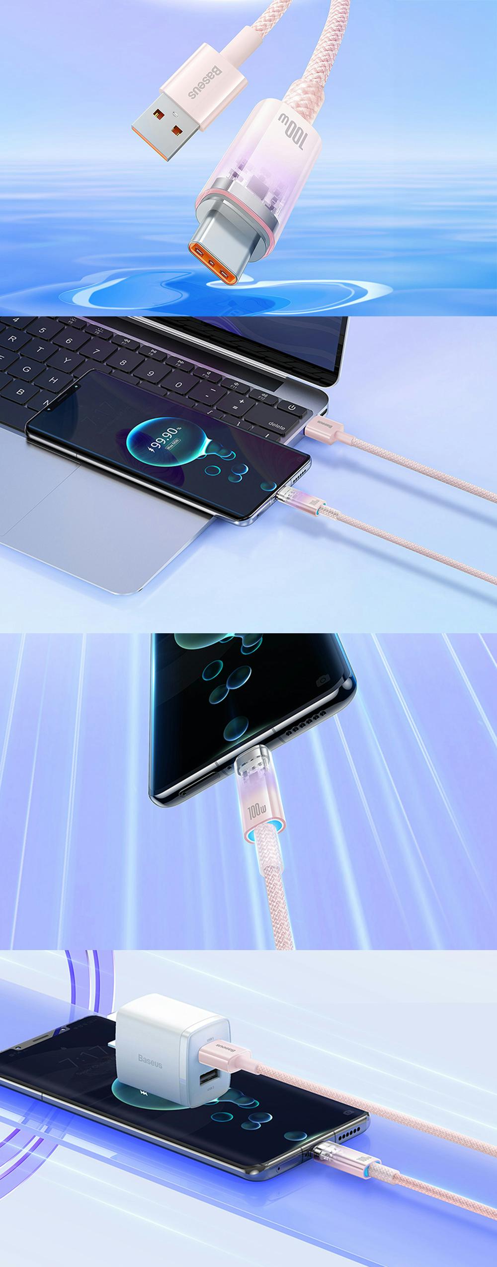 Cablul accepta incarcarea rapida cu pana la 6A si 100W de putere, astfel incat nu va dura prea mult timp pentru a reinnoi energia smartphone-ului dvs. Datorita cipului incorporat, cablul controleaza temperatura, protejandu-l de supraincalzire sau supraincarcare.