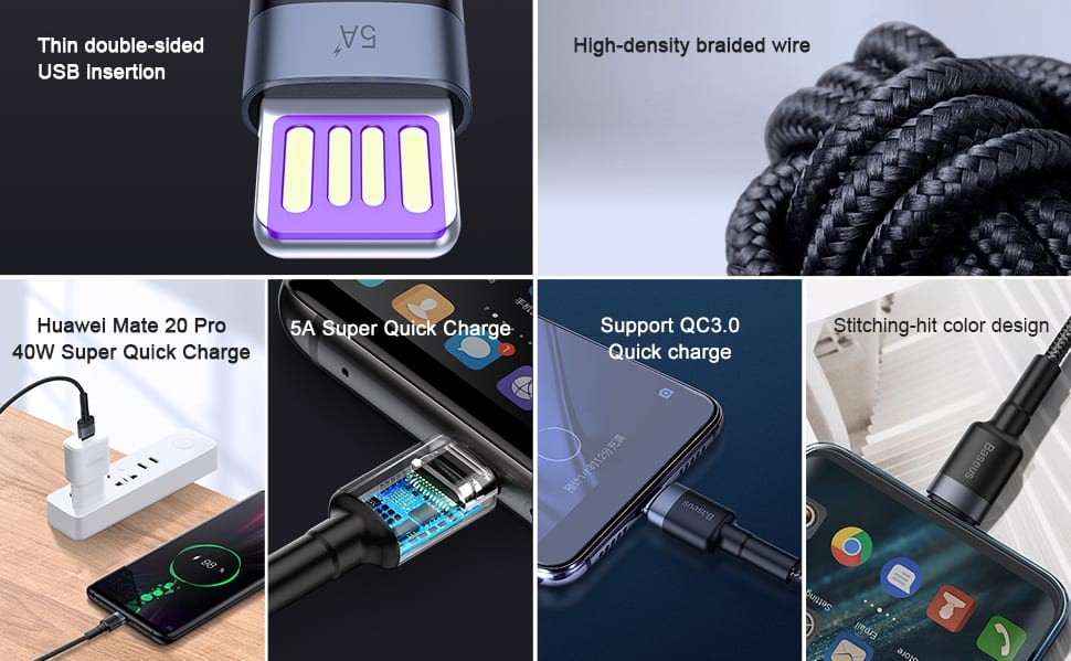 Cablu incarcare si transmisie date USB Type-C ce suporta functia de incarcare rapida Huawei Super Charge de pana la 5A.