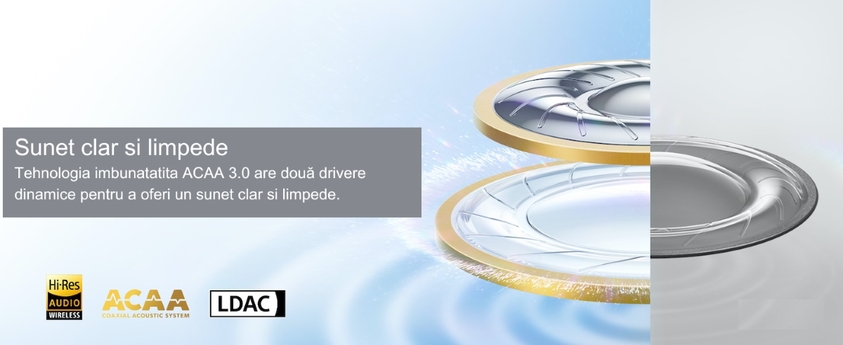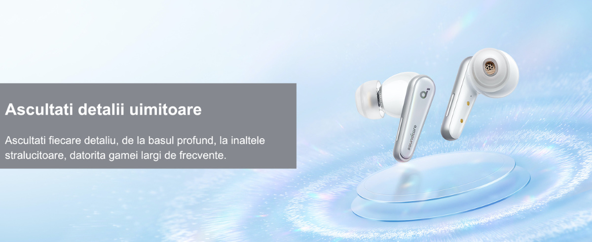 Tehnologia unica SoundCore analizeaza urechile dvs. si modul in care auziti sunetul pentru a crea un profil de sunet personalizat, unic pentru dvs.