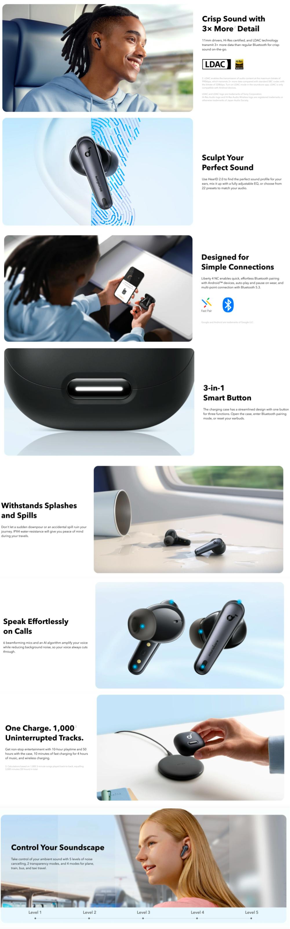 Castile cu anulare a zgomotului Liberty 4 NC au un senzor de sunet in ureche cu sensibilitate ridicata, un driver supradimensionat si o camera inovatoare de izolare a zgomotului care anuleaza pana la 98,5% din zgomot pentru calatorii linistite.