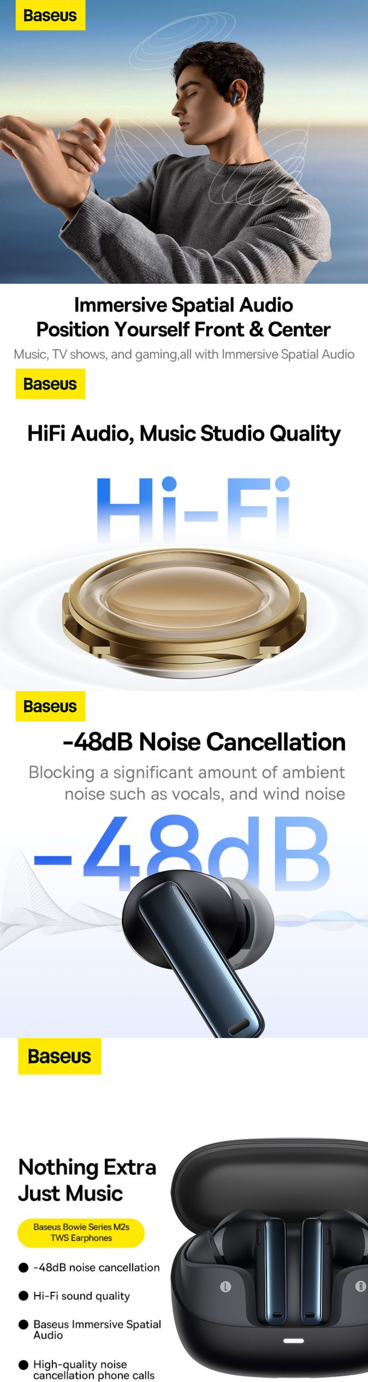 Baseus Bowie M2 vor functiona perfect si pentru apeluri telefonice. Sunt echipate cu un microfon dublu, care impreuna cu anularea zgomotului va permite sa efectuati apeluri clare. De acum inainte apelantul va va auzi intotdeauna fiecare cuvant, chiar daca va aflati intr-un loc aglomerat.