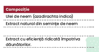 Insecticidul BIO, realizat din ulei de neem (Azadirachta indica), este un agent ecologic si sistemic eficient impotriva unui spectru larg de daunatori. Acesta ataca sistemul nervos al insectelor, inhiba cresterea lor si consumul plantelor, si reduce fertilitatea adultilor si a oualor. Perfect pentru o agricultura sustenabila, insecticidul BIO ofera o alternativa organica eficienta in combaterea diversilor paraziti agricoli.