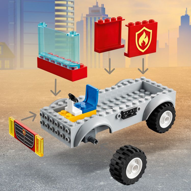 Aoleu! S-a declansat un incendiu si flacarile sunt din ce in ce mai mari! Alatura-te unui pompier si eroinei LEGO City TV, Freya McCloud, in aventuri pompieresti cu actiune din plin. Urca in formidabilul camion de pompieri si goniti la fata locului. Descarca echipamentul din compartimentul de depozitare al camionului si activeaza hidrantul de incendiu. Ridica apoi scara de pompieri in aer si ajuta eroii LEGO City sa salveze situatia