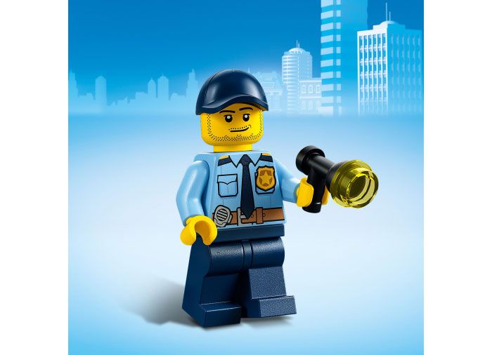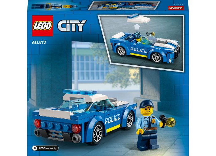 Masina de politie (60312), constand dintr-o jucarie masina politista sport de patrulare cu jante cool, aripi late si anvelope cu priza la sol. Adauga minifigurina politist, care include o jucarie lanterna si chipiu de politist, pentru ore intregi de actiune fantezista cu urmariri de infractori!