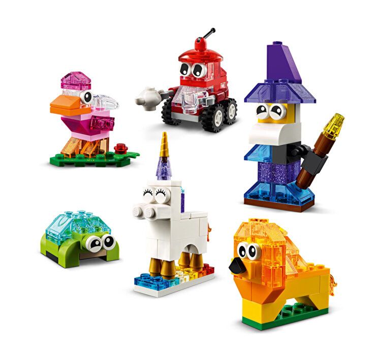 - Include o gama uluitoare de caramizi LEGO transparente, plus piese LEGO clasice.