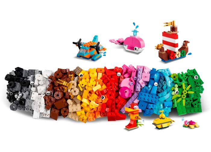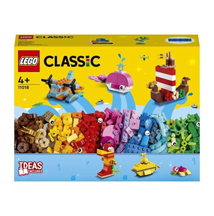 Prezinta copiilor lumea nesfarsita a jocului fantezist cu setul de joc LEGO Classic Distractie creativa in ocean (11018), care include o selectie colorata de piese LEGO si 6 idei inspiratoare de constructie cu tematica oceanica pentru a da startul distractiei, plus 2 pungi cu caramizi suplimentare pentru constructie neingradita.