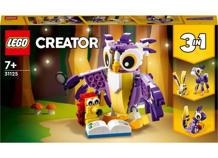 Copiii de 7+ ani pot juca povesti magice cu animale din padure cu acest set de constructie super simpatic LEGO Creator 3 in 1 Creaturi fantastice din padure (31125). Contine o jucarie bufnita inteleapta cu cap rotativ, care citeste povesti unui arici si care are coada, picioarele, aripile si penele pozitionabile.