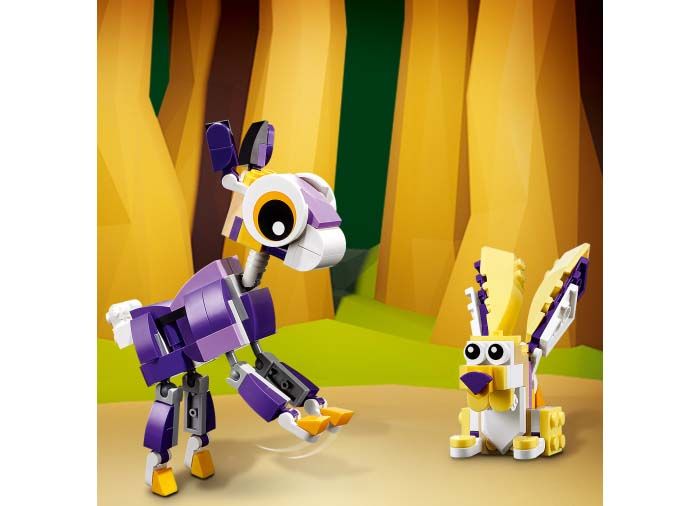 Copiii au posibilitatea de a construi 3 scene diferite si pline de distractie cu acest minunat set LEGO 3 in 1. Ei pot construi o bufnita inteleapta si un arici, le pot reconstrui pentru a crea cerb tanar si un iepure, le pot transforma intr-o veverita poznasa care rontaie o ghinda sau pot folosi cele 175 de caramizi pentru a crea un animal nou.