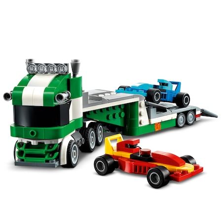 Pe micii constructori ii asteapta aventuri palpitante in curse cu jucaria minunata de constructie Transportor de masini de curse LEGO Creator 3 in 1 (31113). Aceasta consta dintr-un camion cu remorca detasabila ce transporta 2 masini rapide care pot fi descarcate pe o rampa, permitand copiilor sa se bucure de actiune de curse.