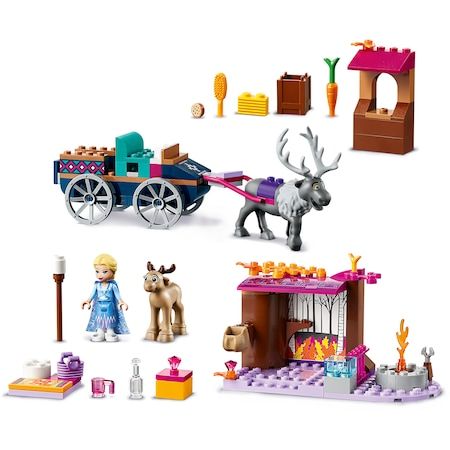 Include o figurina minipapusa Elsa Frozen, plus 2 figurine ren LEGO: Sven si un pui de ren.