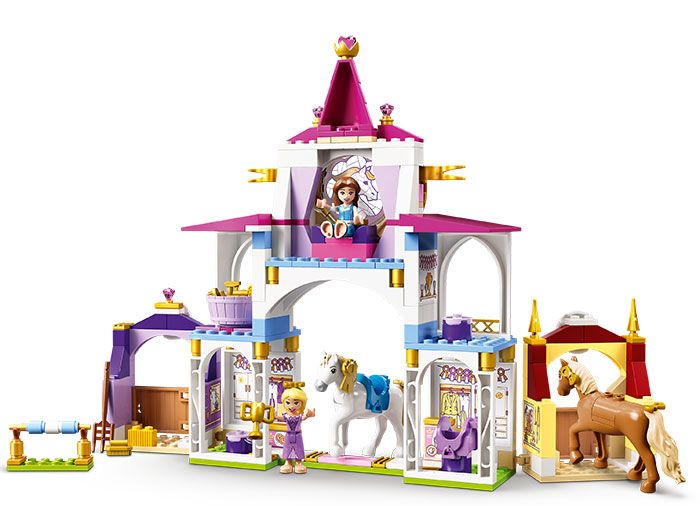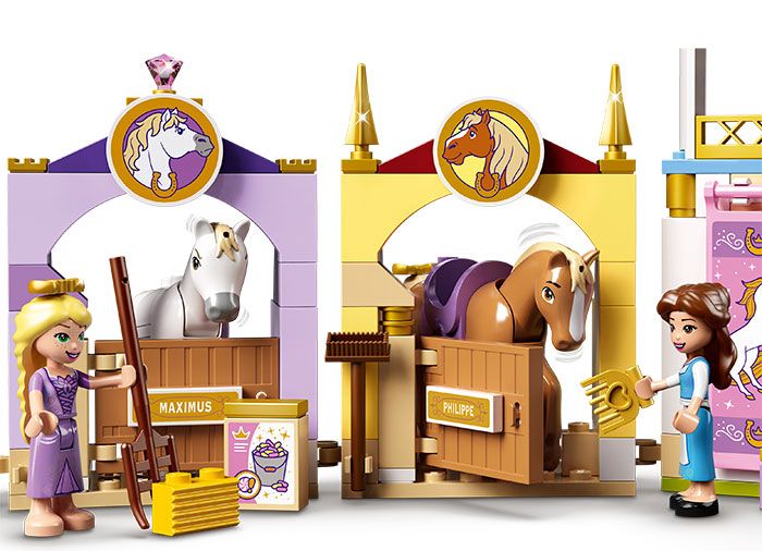 Acest set creativ permite copiilor sa se joace cu 2 figurine mini-papusi - Belle si Rapunzel Disney - plus figurinele LEGO caii Maximus si Philippe, care se pot calari. Acest cadou premium cu Printese Disney este exceptional, si va capta atentia tuturor copiilor. Ia saua si porneste spre grajdurile regale cu Belle si Rapunzel Disney pentru a le ajuta sa-i ingrijeasca pe Maximus si Philippe! Exploreaza grajdul principal cu camerele cu trofee si accesorii si spatiul primitor de la mansarda pentru relaxare. Curata staulele cailor, pune-le seile si porneste la drum. Ah, uite, un salt. Eeei! Dupa plimbare, scoate seile si tesala caii, apoi ofera-le niste gustari!