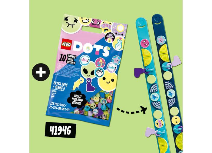 seturile DOTS initiaza copiii in bucuria jocului LEGO, prin crearea si decorarea seturilor. Orice se potriveste cu aceste bratari, inclusiv toate celelalte seturi DOTS (vandute separat) deoarece imaginatia copiilor detine controlul si magia. Seturile de artizanat DOTS sunt cadouri surpriza minunate sau daruri de zi de nastere pentru copiii creativi.