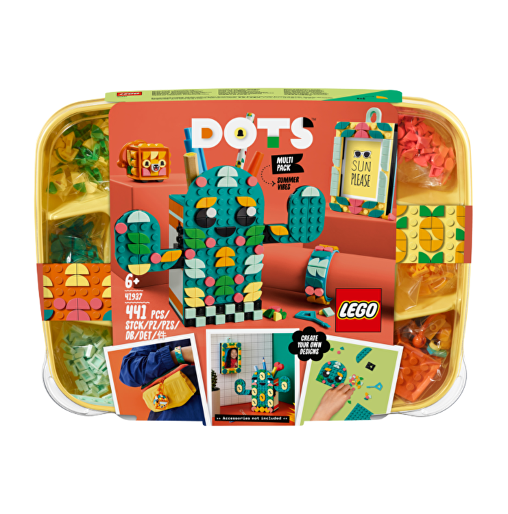 Descopera o lume a distractiei LEGO DOTS! Incepe prin a crea o bratara cool decorata cu o explozie de culori de vara. Proiecteaza si ataseaza un breloc cu un leu fioros la rucsac, la imbracaminte sau oriunde doresti. Creeaza o rama foto unica pentru a-ti pastra fotografia preferata de dimensiuni mici si agat-o pe perete. Apoi creeaza si proiecteaza suportul pentru creioane cactus perfect, pentru a-l adauga la spatiul tau. #dotyourworld