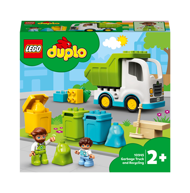 Copiii mici au atat de multe de facut si de invatat alaturandu-se celor 2 figurine DUPLO pentru o varietate de activitati de reciclare. Exerseaza sortarea dupa culoare punand pungile colorate in pubelele corespunzatoare; dezvolta abilitati motorii fine cu capacele pubelelor cu deschidere si inchidere si cu camion de gunoi ce se poate conduce; stimuleaza imaginatia cu povesti nesfarsite jucate pe roluri; aduna gunoaiele de pe jos cu matura mare; si dezvolta obiceiuri ecologice care vor dura toata viata.
