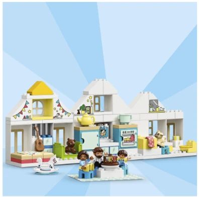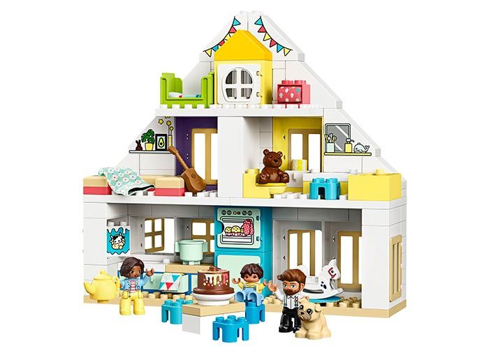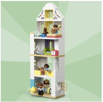 Casa principala de papusi masoara peste 36 cm inaltime, 39 cm latime si 10 cm adancime. Pentru a extinde posibilitatile de joaca, combina acest set de joaca versatil cu alte seturi de joaca LEGO DUPLO.