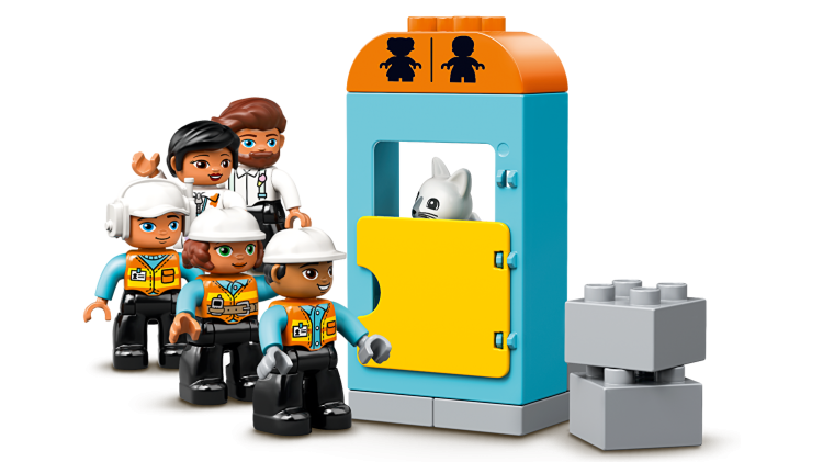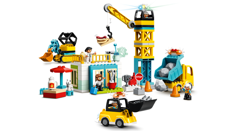 Cu 5 figurine contemporane o femeie zugrav, un sofer, doi constructori si un vanzator la stand-ul de hotdog plus multe alte elemente distractive, precum caramizi luminoase si cu sunet, un buldozer cu motor care porneste atunci cand e impins usor, setul antreneaza, distreaza si inspira imaginatia celor mici. Pentru a extinde beneficiile de joaca, combina aceasta jucarie cu alte seturi LEGO DUPLO Constructii.
