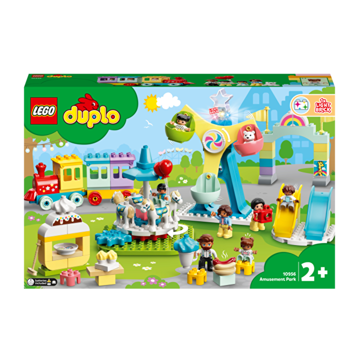 Vino alaturi de copilasul tau intr-o calatorie plina de fantezie la LEGO DUPLO Town (10956) Parcul de distractii si exploreaza o varietate uimitoare de atractii concepute pentru a captiva, amuza si stimula mintile in crestere.