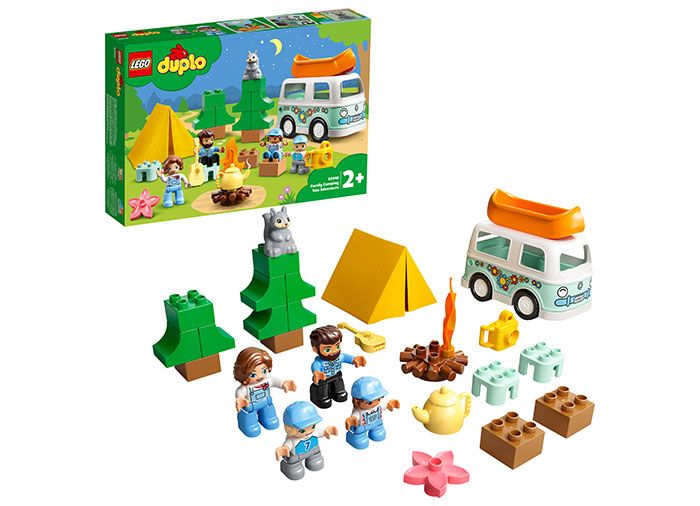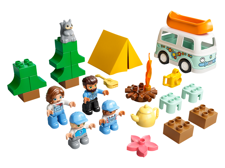 Include 4 figurine DUPLO, o rulota, cort din tesatura, canoe si accesorii.