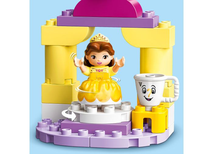 Cu aceasta emblematica scena cu constructie si joaca din Disney Frumoasa si Bestia, prescolarii au parte de magia cu final deschis a basmelor+u00a0si de distractie+u00a0pentru dezvoltare. Copilasii vor adora sa o imbrace pe printesa Belle in rochia ei aurie, apoi sa-si foloseasca degetul pentru a roti podeaua salii de bal a castelului si sa o priveasca pe Belle dansand cu prietenii ei fermecati, Lumiere, Cogsworth si Chip.