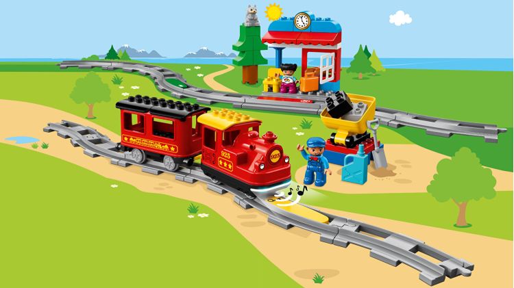 Trenul cu aburi LEGO DUPLO porneste usor precum Impinge si porneste!