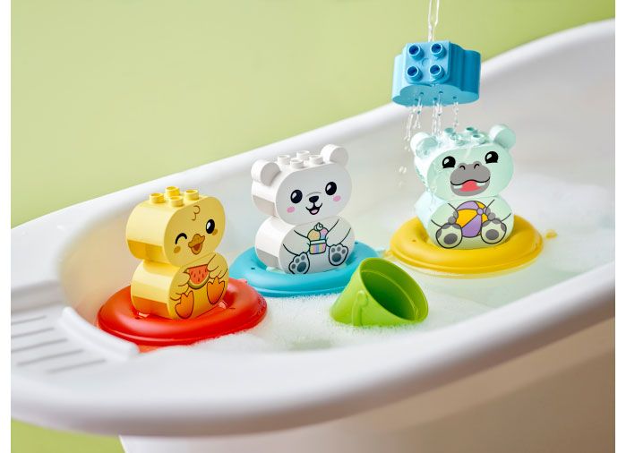 LEGO DUPLO Prima mea distractie la baie: Tren cu animale plutitoare (10965) este o jucarie de baie pentru dezvoltare usor de curatat, pentru prescolari de 18 luni si mai mari.
