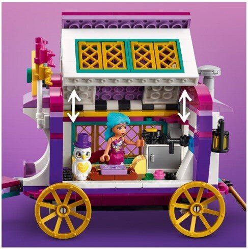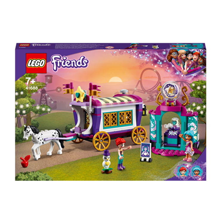 Cauti un cadou pentru un copil pasionat de vehicule neconventionale? Incanta-l cu LEGO Friends (41688) Rulota magica. Acest set de joc valoros consta dintr-o jucarie rulota pentru copii, un cort al ghicitoarei, 2 minipapusi si figurine cal si bufnita.