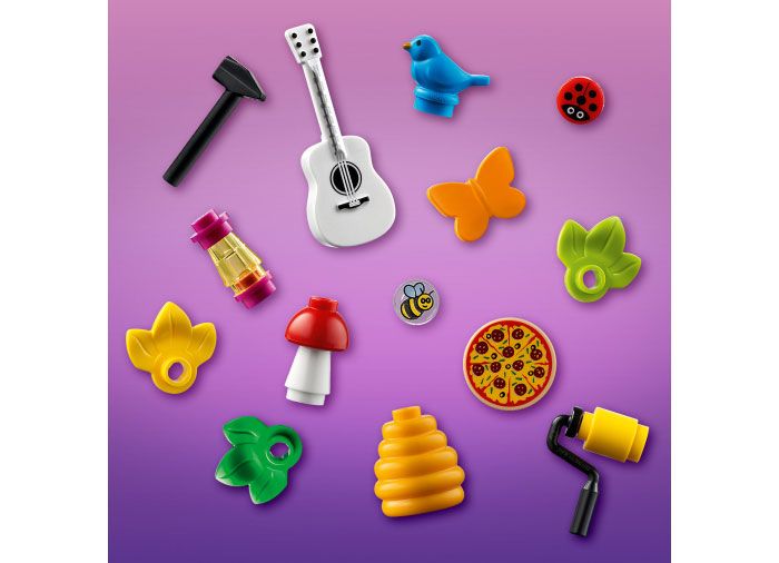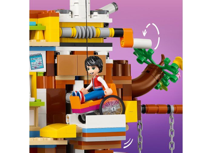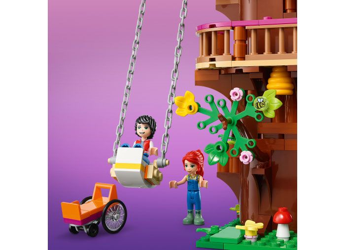 Acest set are o multime de detalii complexe, pentru o joaca imaginativa fara limite. Copiii scot mierea din stup, mesteresc casute pentru pasari cu menghina de tamplarie, rotesc turbina eoliana pentru a ridica elevatorul sau se joaca pe toboganul si leaganul urias. Mai sunt si detalii ascunse de descoperit. Pentru a sarbatori 10 ani de LEGO Friends, acest set are un cod QR care dezvaluie comorile retro ale Orasului Heartlake ascunse in interior.