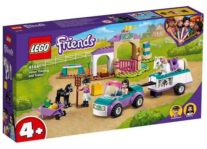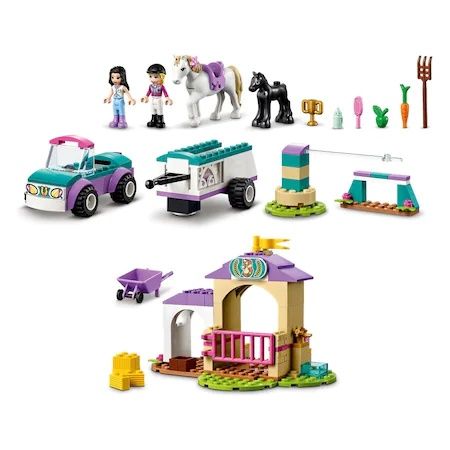 Permite micutilor sa deprinda abilitati de constructie explorand iubirea pentru animale cu LEGO Friends (41441) Dresajul de cai si remorca. Aceasta jucarie colorata de constructie de ferma vine cu o masina, remorca pentru cai, grajduri, roaba, 2 minipapusi, o jucarie cal si o figurina manz.