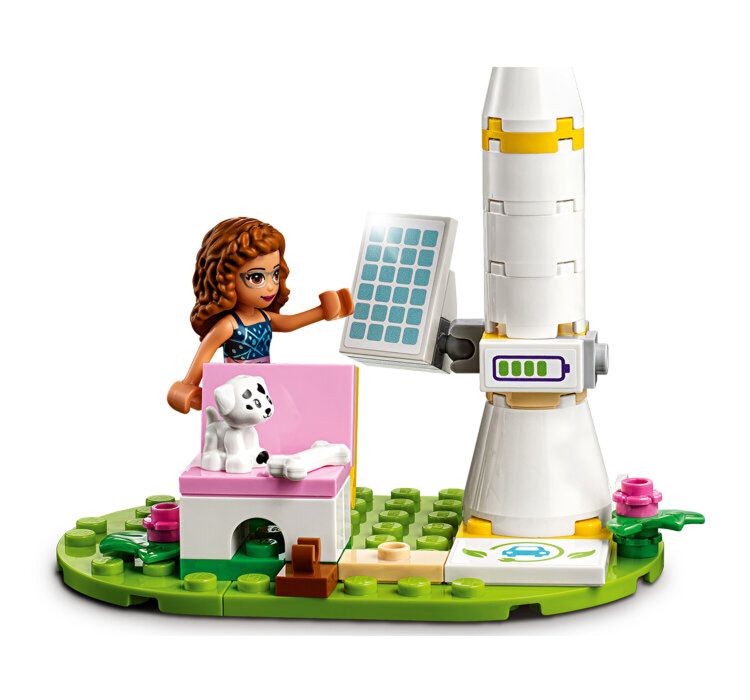 Masina electrica plina de culoare are loc pentru 2 minipapusi - Mia si Olivia - iar in spate este loc pentru catelusul Elliot. In set este inclusa o statie de incarcare ce extinde tematica ecologica cu turbina eoliana si panoul solar de jucarie. Copiii pot apoi sa plece cu zero emisii in aer!