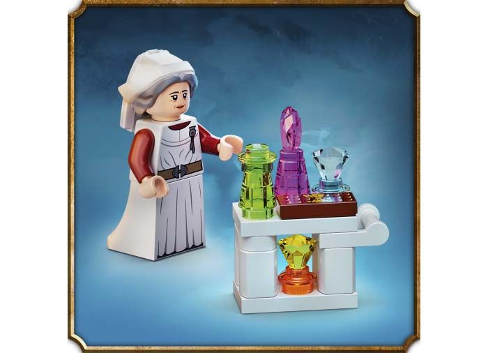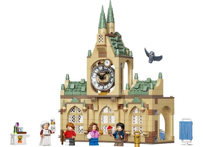 Tinerii vrajitori si vrajitoare vin alaturi de Harry Potter, Ron Weasley si Hermione Granger, intr-un set de joc adaptabil bazat pe o scena memorabila din Harry Potter si Prizonierul din Azkaban. in interiorul Aripii spitalului Hogwarts se afla 3 paturi, un paravan si Doamna Poppy Pomfrey care impinge un carucior plin cu potiuni si dulciuri. Ron este in pat cu un picior bandajat, gata sa primeasca sticla cu dezgustatorul Skele-gro. intre timp, in turnul cu ceas, Harry si Hermione folosesc Clepsidra Timpului. Copiii rasucesc turla pentru a face acele ceasului sa se invarta si a calatori inapoi in timp pentru inca o aventura magica. Jumatatile de sus si de jos ale setului se desprind, astfel incat modulele pot fi stivuite intre ele, iar setul se conecteaza cu altele din aceeasi serie pentru a crea un intreg Castel Hogwarts.