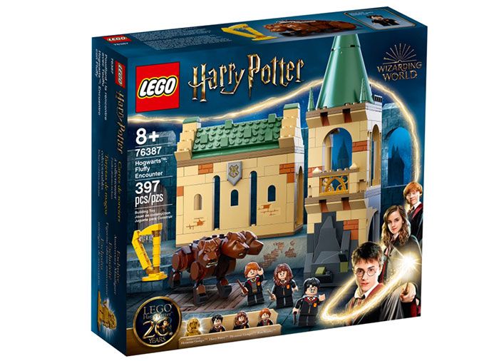 Pune magia Harry Potter in mainile copiilor cu 3 minifigurine populare - Harry Potter, Ron Weasley si Hermione Granger - si Fluffy, cainele gigantic cu 3 capete de la Hogwarts. Picioarele lui Fluffy pot fi puse intr-o serie de pozitii, iar fiecare dintre cele 3 capete mobile are o expresie diferita. Setul cuprinde 5 module separate care se conecteaza intr-o varietate de moduri: o camera mare cu o trapa; camera de practica a magiei; acoperis; camera cu balcon; si o camera ce contine tentaculele incalcite ale plantei Latul Diavolului. Exista si alte surprize: o minifigurina aniversara exclusiva aurie Hermione Granger, 2 placute carti aleatorii de vrajitor, si oportunitatea de a adauga mai multe camere pentru a crea un model de castel Hogwarts complet.