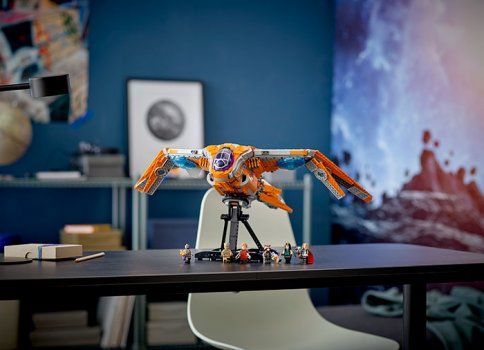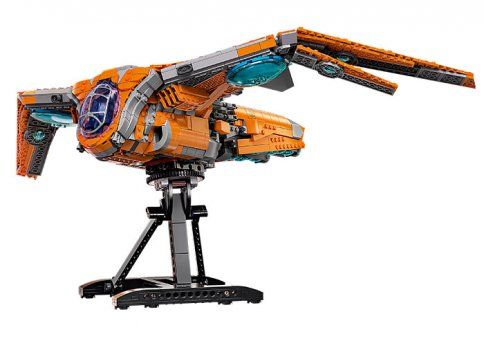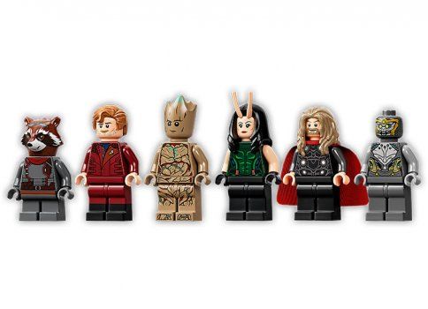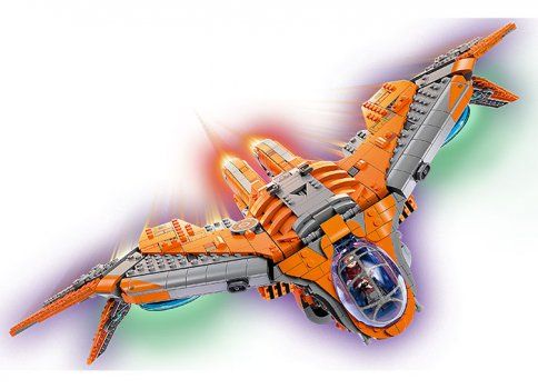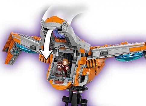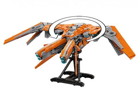 Fanii pot recrea detaliile autentice si stilul formidabil al uneia dintre cele mai emblematice nave spatiale din filmele Marvel Razbunatorii. Carlinga cu deschidere are spatiu pentru toate minifigurinele emblematice LEGO Marvel incluse in set: Star-Lord, Groot, Rocket, Mantis, Thor si un razboinic Chitauri. Dotarile distractive includ un depozit de arme, un computer si un loc unde eroii pot savura cafea si gogosi. Suportul rotativ permite pozitionarea navei spatiale pentru o expunere dinamica si aventuri imaginative fara sfarsit. Iar cand actiunea se opreste, va arata super-cool expusa in camera oricarui copil.