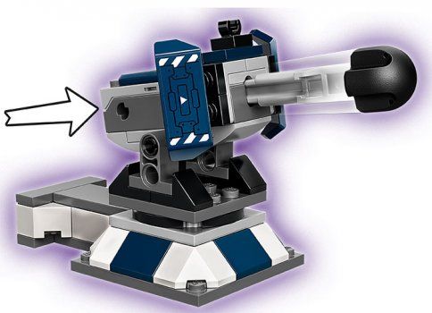 Tunul mare care se roteste si se inclina lanseaza o sageata mare cu varf de cauciuc.
