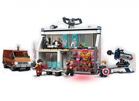 Copiii se alatura unei distributii impresionante de personaje LEGO Marvel - Thor, Captain America, Pantera neagra, Iron Man, Vrajitoarea stacojie, Omul furnica, Thanos si un razboinic Centauri - pentru aventuri nesfarsite cu super-eroi la tabara Razbunatorilor. Setul este plin de dotari pentru a inspira joaca imaginativa: Laboratorul lui Iron Man, unde construieste formidabila Manusa Nano; o zona de agrement si socializare unde super-eroii se pot intalni; o celula de inchisoare; si un camion care se deschide pentru a dezvalui o masina pentru calatorii in timp.