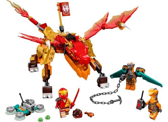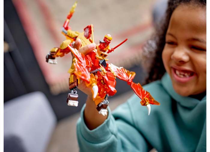 Set de joc dragon LEGO Ninjago cu actiune din plin. Ofera-le copiilor de 6+ ani tot ce le trebuie pentru a se bucura de aventuri ninja pline de actiune cu setul de joc construibil Robotul EVO de Foc al lui Kai (71762). Jucaria dragon are maxilar, cap, coada si picioare pozitionabile, si poate fi perfectionat de doua ori pentru a-l face mai mare, mai puternic si mai rapid.
