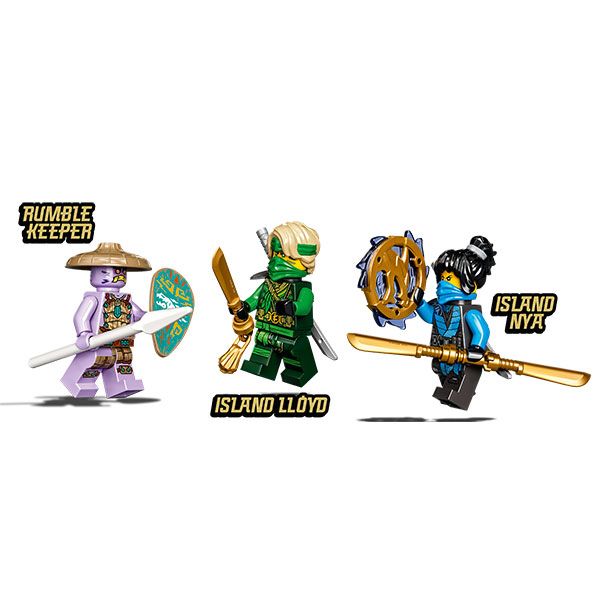 Setul de joc ninja are3 minifigurine:Lloyd insula, Nya insulasi unStrajer al tumultului, pentru a ajuta copiii sa joace propriile lor aventuri fanteziste in jungla si pe mare. Aceste personaje pot pune in scena batalii intre ele pentru a vedea cine castiga pretioasa amuleta a furtunii, inclusa de asemenea in acest set.