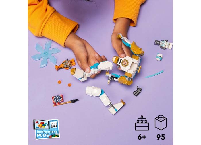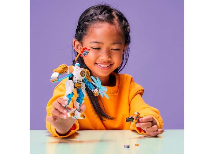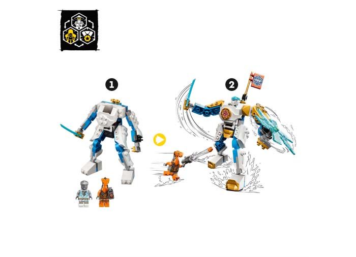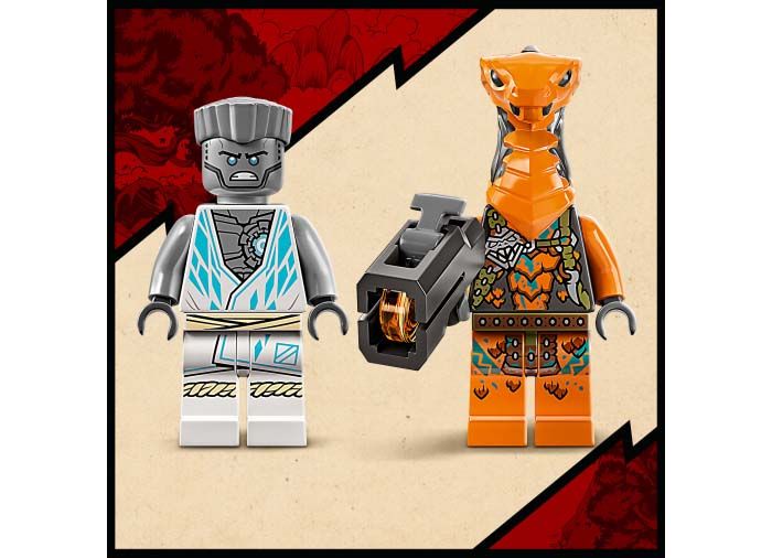 Acest set de constructie ninja include 2 minifigurine: Zane si razboinicul sarpele Mecanicul Cobra, cu care copiii pot juca creand povesti captivante in Orasul Ninjago. Nou din ianuarie 2022 - dupa ce copiii infrang inamicii luptatorilor ninja si finalizeaza misiunea, sunt rasplatiti cu un banner de colectie.
