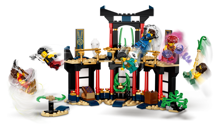 Cu 7 minifigurine: ninja Kai, Jay si Lloyd Legacy, maestrii elementelor Bolobo, Jacob si Gravis si ticalosul Eyezor, ofera copiilor optiuni nesfarsite de a pune in scena lupte si exercitii de antrenament. Nou din ianuarie 2021, Lloyd Legacy este o figurina aurie speciala de colectie, pentru a sarbatori 10 ani de seturi de constructie NINJAGO.