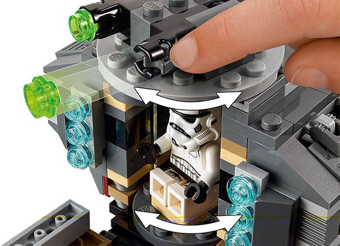 O turela rotativa cu lansatoare de piroane, carlinga si cabina pentru minifigurinele LEGO.