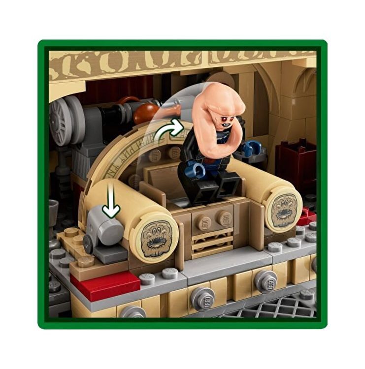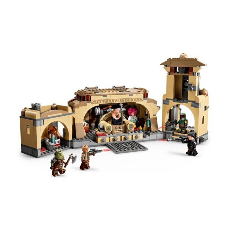 Include un tron cu compartiment pentru comori ascunse si functie pop-up pentru a-l azvarli pe Bib Fortuna, trepte ce se clatina, o poarta cu deschidere si o multime de accesorii de joaca.