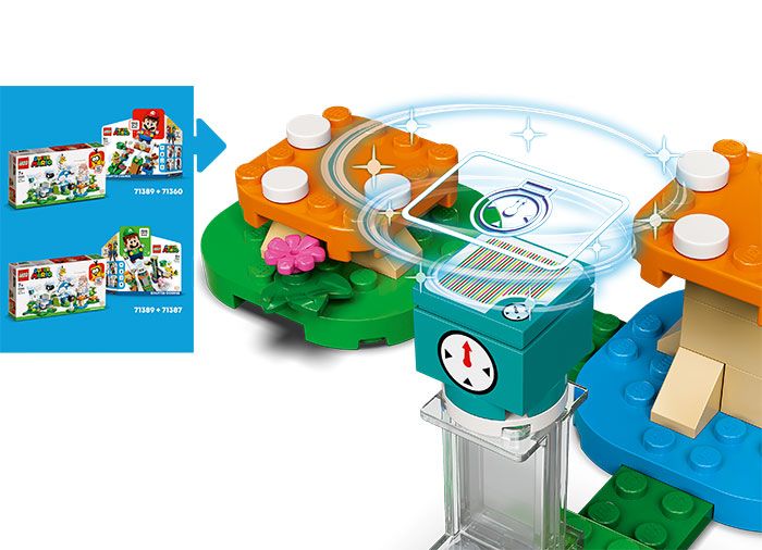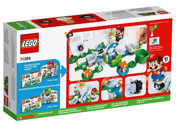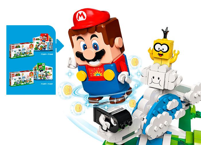 Adu o provocare distractiva in universul LEGO Super Mario al copiilor, cu acest Set de extindere Lumea din cer a lui Lakitu (71389). Consta dintr-o platforma de nori rotativa care este invartita glisandu-i inainte si inapoi pe LEGO Mario si/sau LEGO Luigi (figurinele nu sunt incluse) pe glisoarele nori de jos in incercarea de a-l rasturna pe Lakitu. Setul include figurinele Lakitu, Bill glonte si Fuzzy, plus un Bloc de timp care ofera timp suplimentar in nivel. (Nota: Setul de baza 71360 sau 71387 este necesar pentru jocul interactiv.)