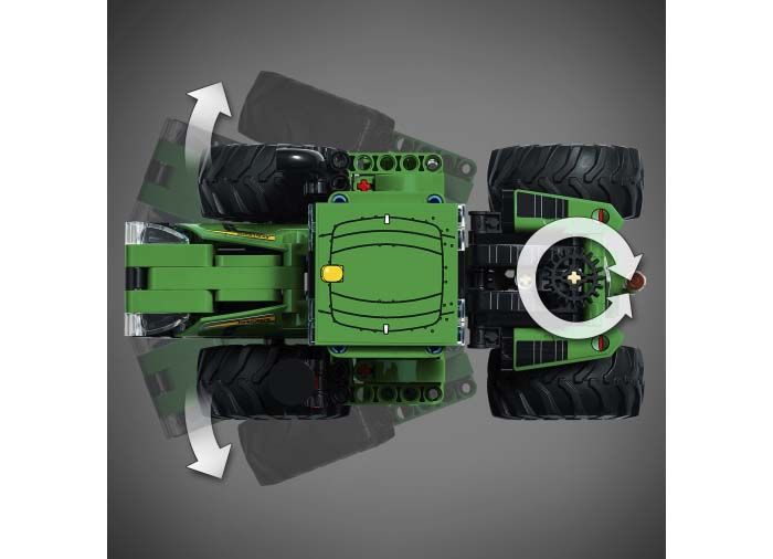 Pregateste-te sa faci fata oricarei lucrari la ferma cu LEGO Technic John Deere 9620R 4WD Tractor. Acest model este inspirat din realitate, si are roti imense si directie articulata. De asemenea, are o remorca basculanta - perfecta pentru a transporta incarcaturi grele. Avand roti pentru toate tipurile de teren, remorca se poate deplasa pe orice suprafata. Include si o bara de tractare cu o balama suplimentara, permitand transportul peste dealuri si vai.