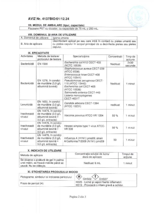 Aplicati o cantitate mica de gel pe maini si intindeti-l pana la uscarea completa a acestora.