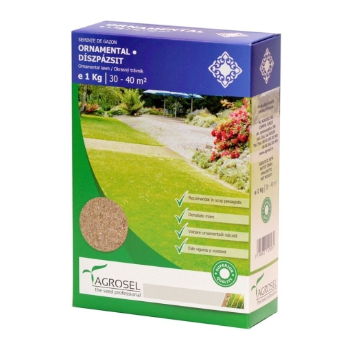 Semintele de gazon Ornamental AGROSEL sunt ambalate intr-o cutie de carton de 1 kg, care este suficienta pentru a acoperi o suprafata de 30-40 m2. Acest gazon de calitate superioara va oferi un gazon verde si frumos, care va aduce un plus de frumusete gradinii dvs.