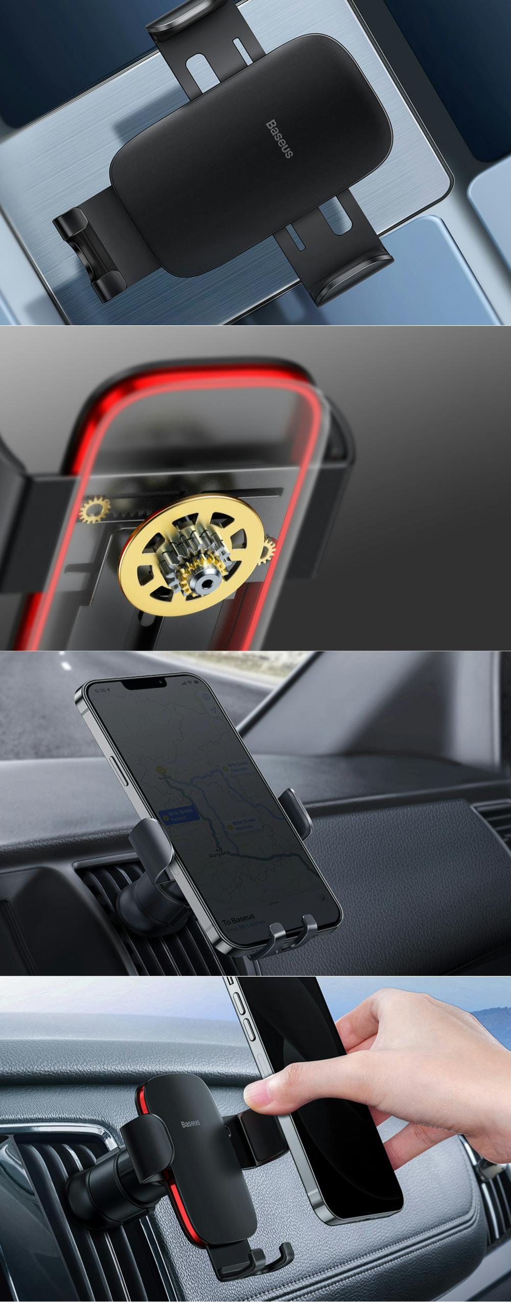 Suportul auto Baseus Metal Age II este partenerul ideal pentru telefonul tau in drumurile lungi cu masina. Acesta este compatibil cu dispozitive mobile cu diagonala intre 4.7 si 6.7 inch si se monteaza in grila de ventilatie a bordului. Interiorul clemelor de sustinere este captusit cu silicon, astfel incat telefonul tau va fi protejat de zgarieturi.